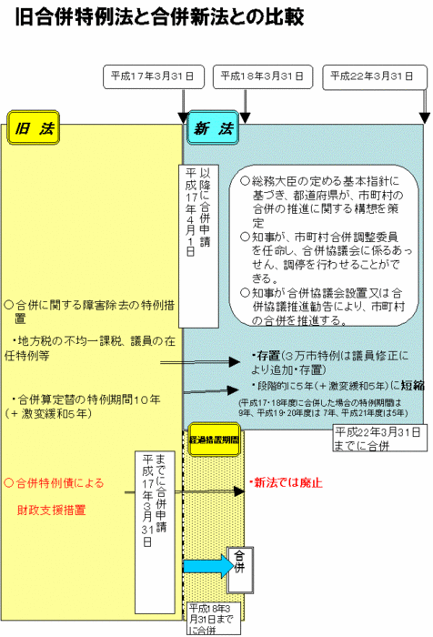 ホーム > 県政情報 > 市町村情報 > 市町村合併・権限移譲・広域連携 > 市町村合併とは > 合併特例法(新旧)の概要