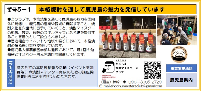 | 5-1 | 特定非営利活動法人かごしま焼酎マイスターズクラブ |