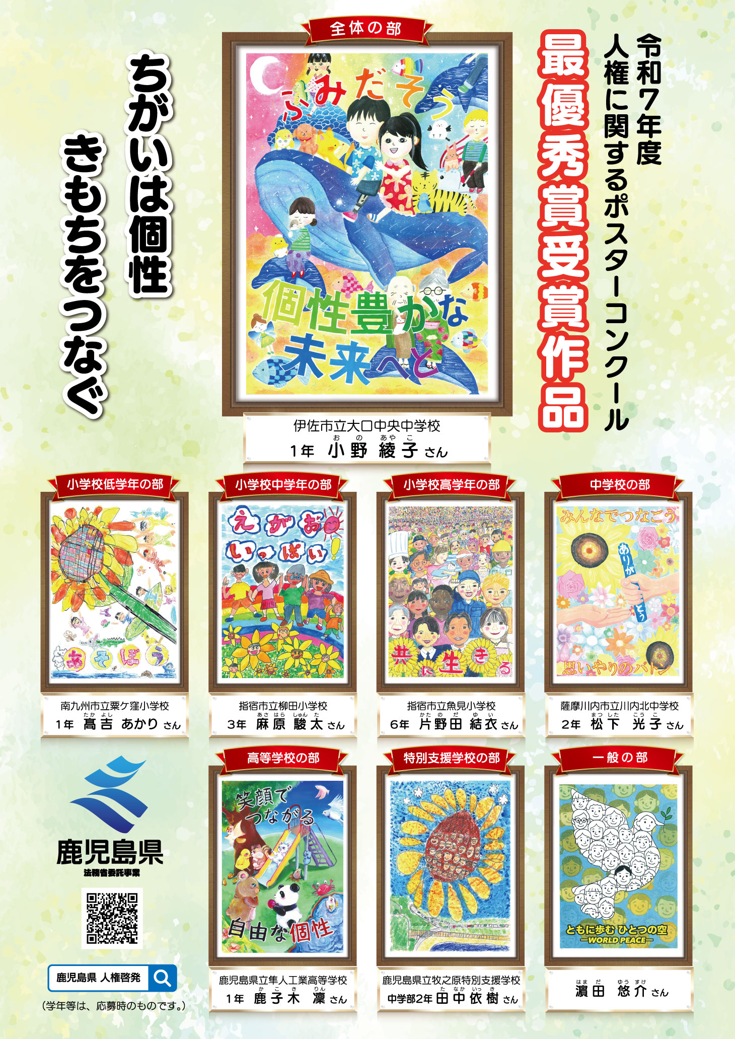 人権に関するポスターコンクールは,県内の児童・生徒等の人権に関する理解を深めることを目的として昭和63年から開催しており,各学校の先生方をはじめとする関係者の御協力をいただきながら,今年度で38回目を実施することができました。