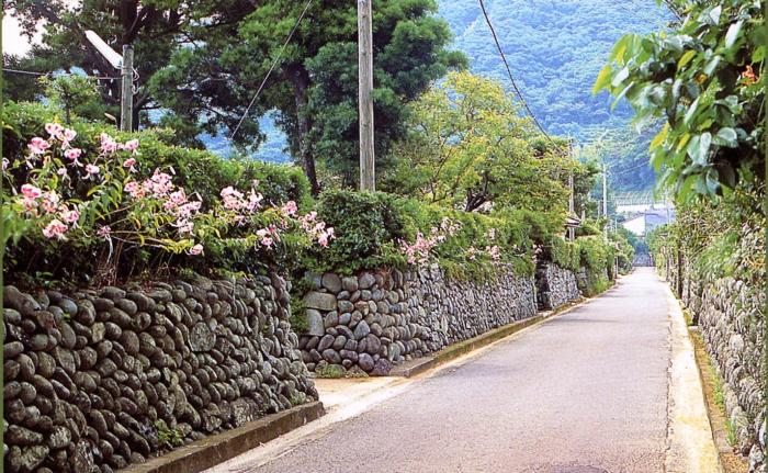 | 講評 | 甑島は,鹿島断崖に見られる「甑島の白亜紀-古第三紀層」が日本の地質百選に選定されるなど,特異な地質構造を有しており,海辺の玉石は,貴重な資源となっている。 また,武家屋敷跡の石垣風景は,鹿児島県内の他の地域においても多く見られるが,海辺で採取した玉石を使って積まれた石垣は甑島のみである。 これらを背景とした玉石垣は,保全や維持が大変困難であるものの,集落の方々による手入れが行き届き,統一された美しさは,未来に繋げる遺産である。 近年,観光地としても脚光をあびており,島特有の鹿の子百合と一体となった,歴史と華のあるユニークな景観は,地域の多様な面を表現し,訪れる人々を魅了している。 |