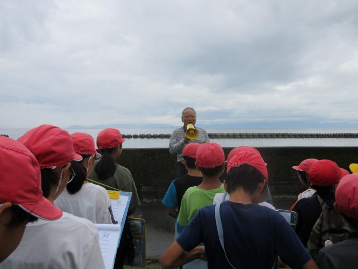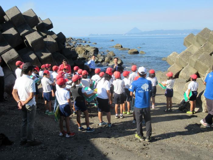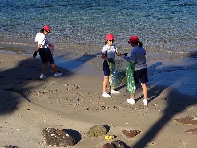 地域の海岸の巡回を行う中で,マイクロプラスチックについて学び,5・6年生は12月に,3・4年生は1月に海岸清掃を行いましたが,神川海岸には,ペットボトル,空き缶,使い捨てライターなど,多数のごみが常に漂着していることが分かりました。一見すると感動的に思われるペットボトルレターも,ごみ等の海洋投棄であることを学ぶことができました。