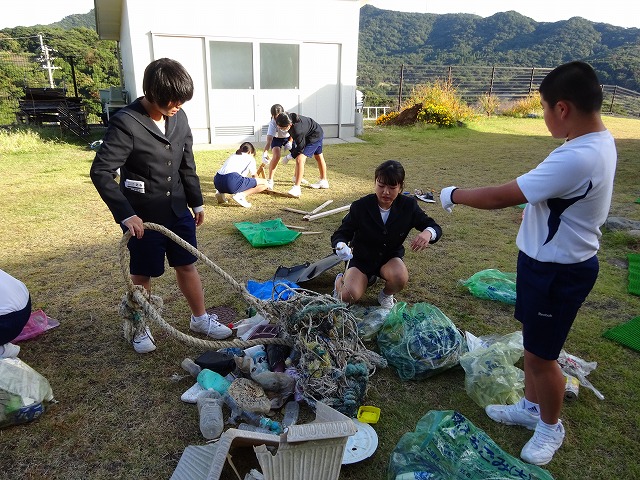 坊津学園では,地域や海岸の清掃活動を通して,地域の環境について考えました。海岸で清掃活動を行い,収集したゴミを分別し,分析しました。海から流れてくるゴミを減らすための方法を考え,インターネットで発信する計画を立てています。