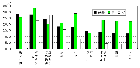 図2趣味・娯楽:行動の種類別行動者率(単位:%)