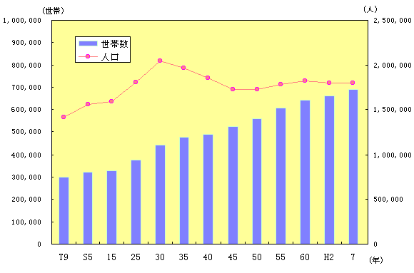 平成7年10月1日現在の鹿児島県の人口は1,794,224人で前回調査の平成2年に比べ3,600人,0.2%減少している。