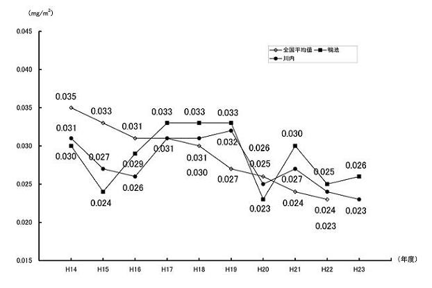 また,環境基準の設定されていない項目についても全国平均値と比較すると同等若しくは低いレベルにありました。
