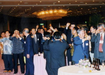 須賀龍郎鹿児島県知事、タイ・ウタイタニ県のパユンサック・セサベ県知事のあいさつの後、溝口宏二鹿児島県議会議長の乾杯の発声により、交流会は開宴した。