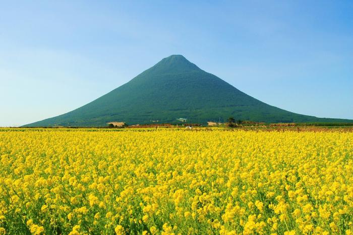 標高924m、三方を海に囲まれた二重式火山。ゆるやかなすそ野を持つ美しい姿から"薩摩富士"と呼ばれ、日本百名山に選定されている。