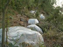伐倒した被害木をビニールで包んで薬剤によりくん蒸し,松の中にいるカミキリの幼虫等を駆除する。