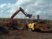 被害木をチッパーにより細かくチップ化することで,松の中にいるカミキリの幼虫等を駆除する。