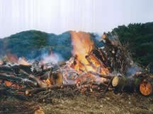 被害木を焼却することで,松の中にいるカミキリの幼虫等を駆除する。