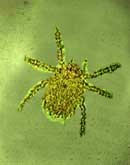 つつが虫病は,草むらや草木のよく繁った場所でツツガムシ(ダニの一種で大きさは約0.3から0.5mm)に刺されておこる病気です。
