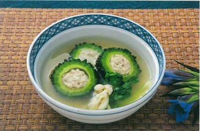 にがうりの肉詰めあんかけ 鶏肉とパパイアとパプリカのカレー炒め 優秀賞色の朝