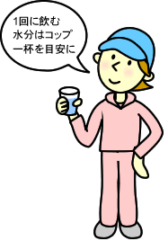 こまめに水分補給をする。