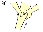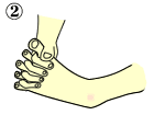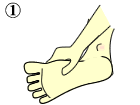 2.足の指の間に手の指を入れて、足の指の間を広げる。