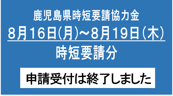 ホーム > 健康・福祉 > 医療 > 感染症 > 新型インフルエンザ等関連情報 > 新型コロナウイルス感染症(COVID-19)関連情報 > 過去の情報 > 事業者向け経済的支援 > 【要請期間:8月16日~8月19日】【要請期間:8月20日~9月12日】【要請期間:9月13日~9月30日(徳之島町・天城町・伊仙町)】飲食店に対する営業時間の短縮要請及び協力金について