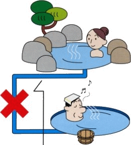 原湯と循環水は配管で接続すると,原湯が汚染される恐れがあります。