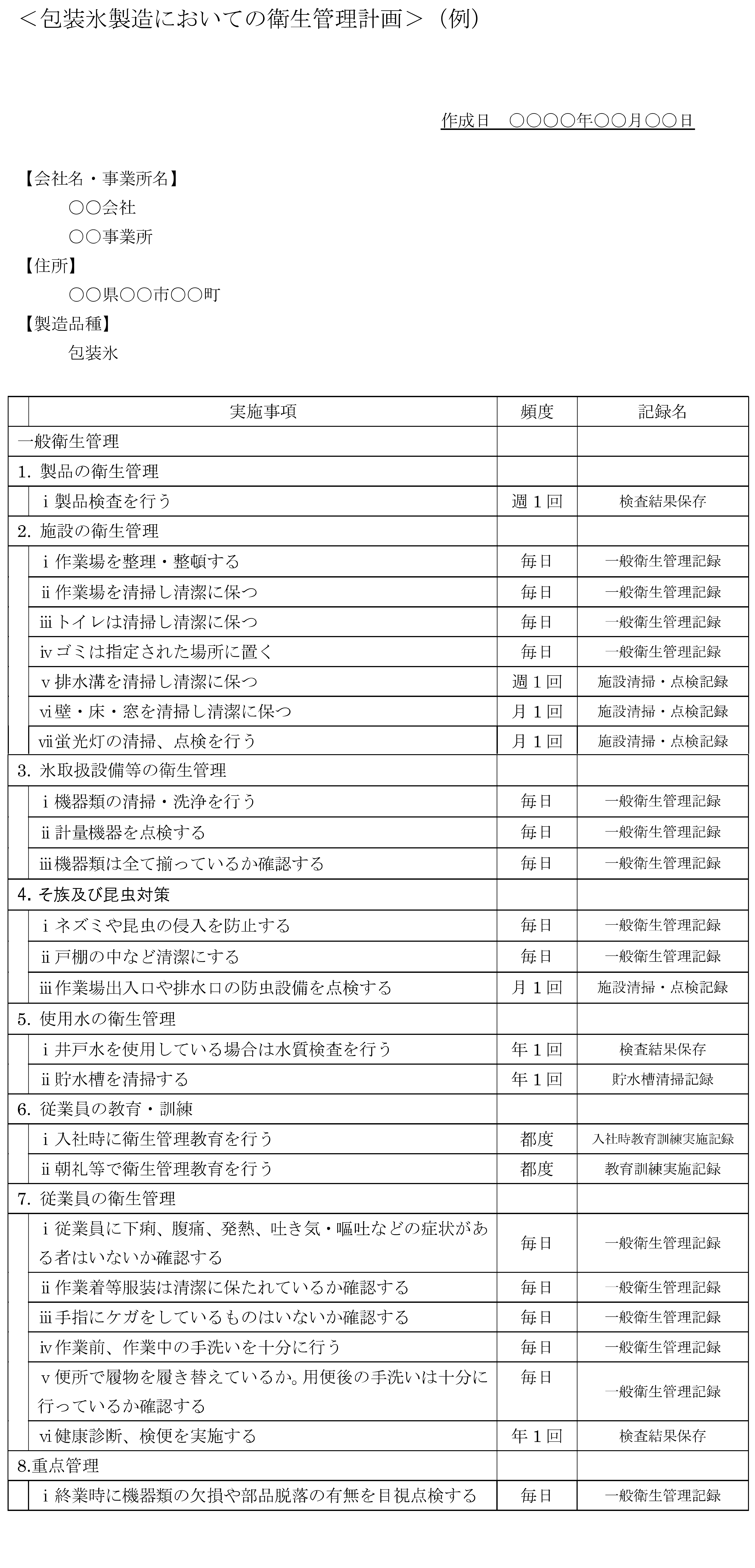 各事業者団体が作成した「手引書」を参考に,チェック方式でそのまま使用することが可能な「衛生管理計画」と「記録様式」を作成しました。是非ご活用ください。