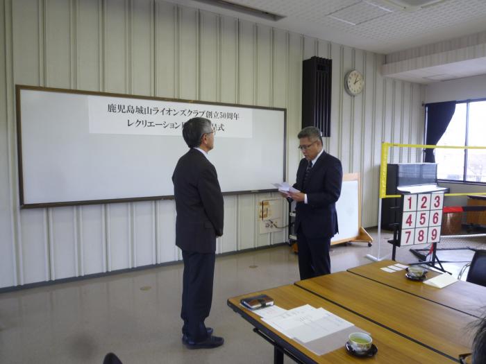 贈呈者あいさつ鹿児島城山ライオンズクラブ会長岡崎洋人様