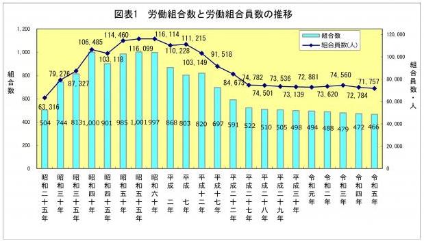 厚生労働省が労働組合の組合数や組織率等の実態を明らかにするために,令和5年6月30日現在で実施した標記調査の本県分結果を取りまとめました。
