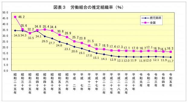 労働組合の推定組織率(図表3)