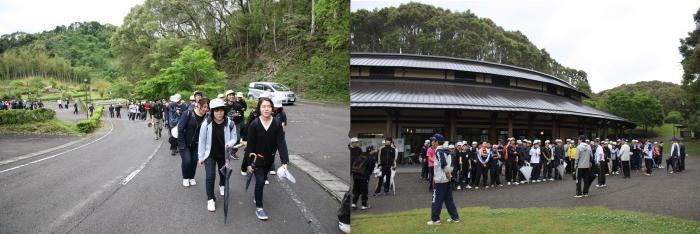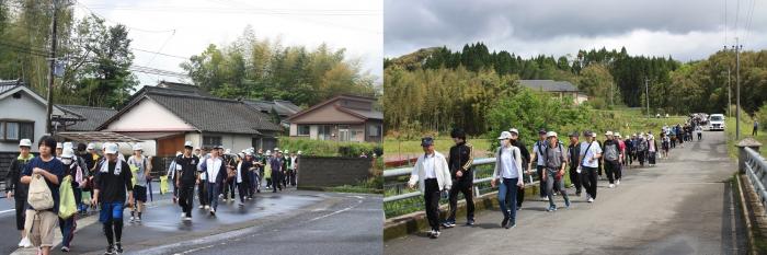 4月28日、毎年恒例の健脚訓練を実施しました。時より小雨が降るあいにくの天気でしたが、ゴミ拾いをしながら、史跡や名所を巡りました。訓練生は、さつま町の歴史や風土を肌で感じながら、互いの親睦を深めました。また、普段接する機会の少ない職員とも冗談交じりに会話をし、クラスや世代の垣根を超えて交流している姿が印象的でした。