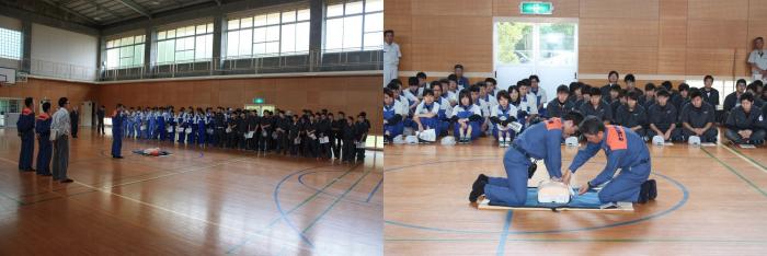 現在、AEDが本館に設置されていることから、いざという時に有効に活用できるようにと、本講習を毎年実施しています。今後、救命現場に遭遇した際には、勇気を持って救命処置に参加し、今回の講習内容を活かしてくれるものと思います。消防署の皆さん、ありがとうございました。