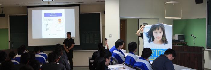 講座では選挙権年齢の引き下げと選挙の意義、選挙制度の概要、若者の投票率、投票の仕方、期日前投票と不在者投票の違い、インターネット選挙運動について説明していただきました。また、タレントの広瀬すずさんが起用されている総務省ポスターを提供していただき校内に掲示しました。