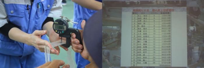 個人戦では、日頃の訓練の成果を発揮しようと各自が薄さの限界に挑み、会場全体が熱気に包まれました。記録や順位が目まぐるしく入れ替わる中、室内造形科2年生が上位入賞を占め、層の厚さを見せつけました。