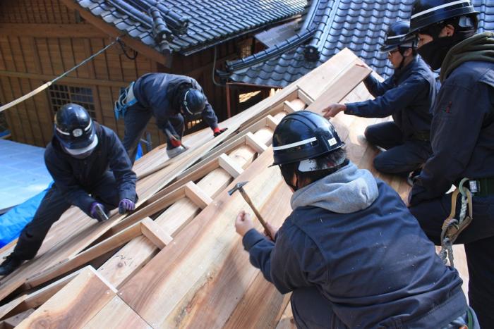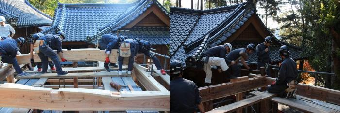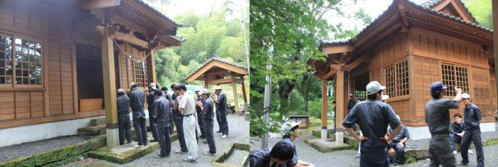 工事の安全を祈願し、10年前の先輩たちが作り上げた本殿と拝殿を目に焼き付け、いよいよ着工です。