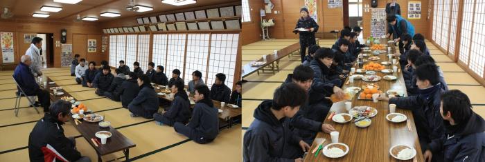 現場実習は日増しに寒さが厳しくなりました。今月は度々氷点下となり、放射冷却で霜が降りることも多く、訓練生は冬の現場の過酷さを体験しています。そんな訓練生を見かねた地域の住民や婦人部の皆さまから、毎日のように温かいおもてなしを頂きました。