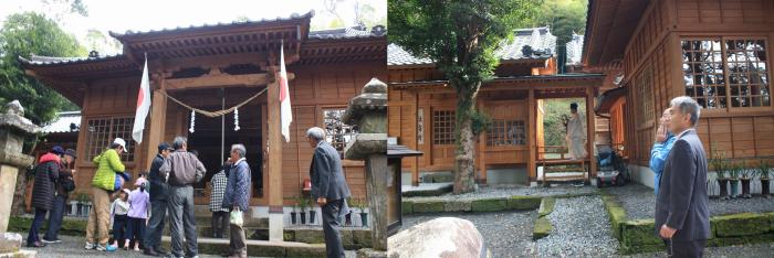 薩摩川内市東郷町の諏訪神社で、社務所完工による御社殿完成記念祭りが開催されました。祭りには、地域の方々はもとより、農林水産副大臣や県議会・市議会議員、小中学校の校長先生や役所の方々など多数出席され、玉ぐし奉奠などの神事が執り行われました。