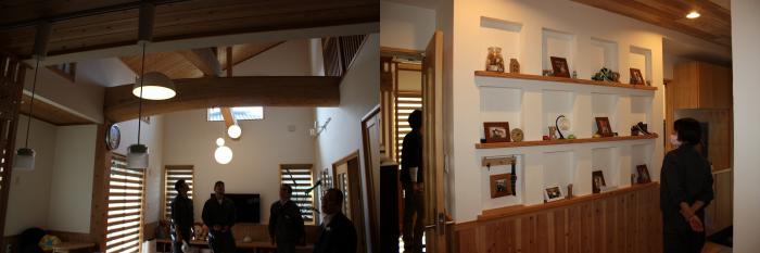 午後からは、工務店に就職した修了生の兄弟子に当たる若き棟梁のご自宅を見学させていただきました。社長を含む全社員が技能五輪全国大会に出場経験があり、大工育成に情熱を傾けている工務店です。訓練生達は、若干30歳でこだわりのマイホームを自ら墨付けし、手刻みで建てた若き棟梁の姿に、将来の自分を思い描きながら、真剣な眼差しで説明に聞き入っていました。最後に、工務店の社長から温かい励ましをいただき、訓練生は想いを新たにしていました。お忙しい中、対応していただきありがとうございました。