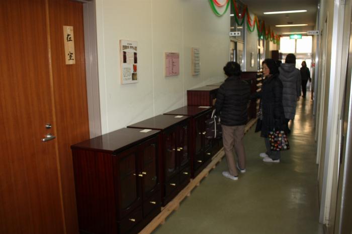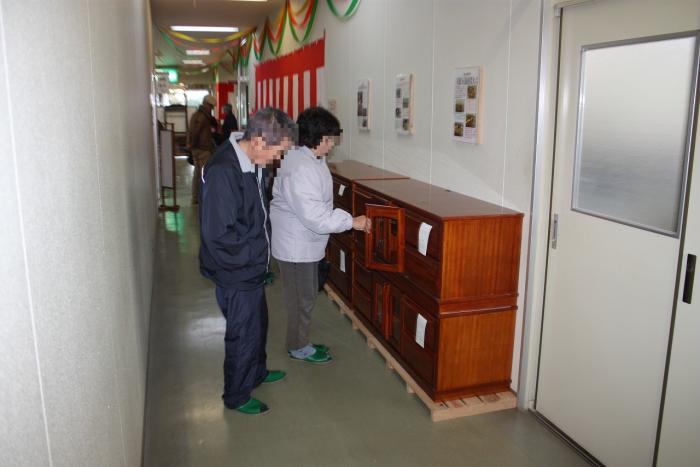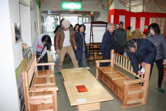 1月15日、毎年恒例の家具展示即売会が始まりました。初日は、お目当ての家具を購入するため、朝早くから行列ができ、所狭しと並んだ家具は瞬く間に売れていきました。購入された方も、作品の出来映えに感心した様子で、訓練生も誇らしげに家具を搬出していました。