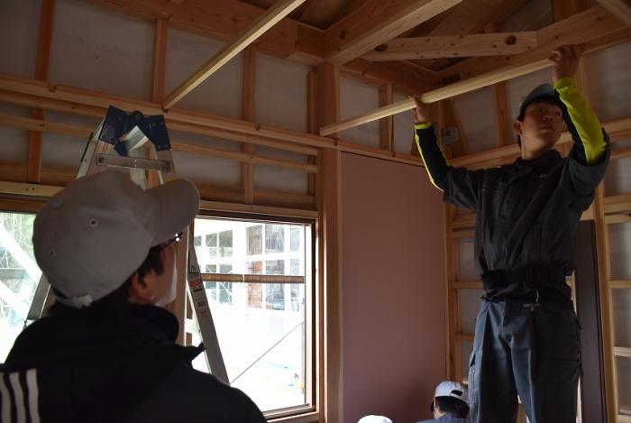ホーム > 産業・労働 > 雇用・労働 > 職業能力開発 > 宮之城高等技術専門校 > 各科紹介 > 建築工学科 > 建築工学科の現場実習 > 訓練版最小限住宅(内外装編)【R1年度】