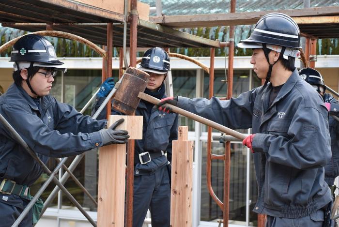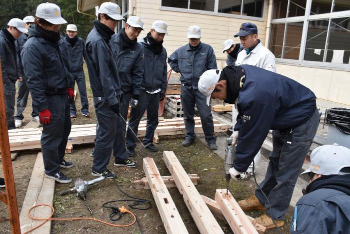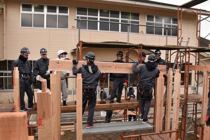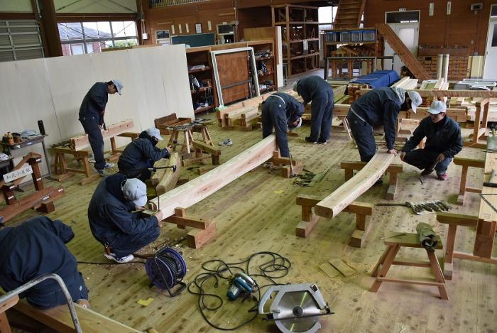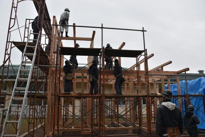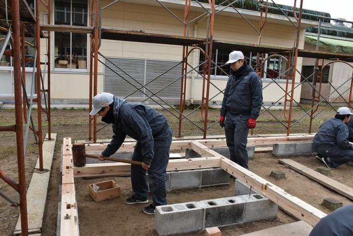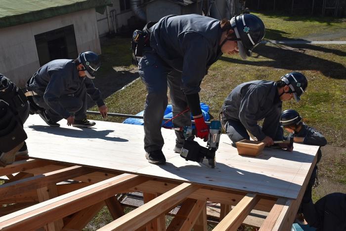 ホーム > 産業・労働 > 雇用・労働 > 職業能力開発 > 宮之城高等技術専門校 > 各科紹介 > 建築工学科 > 建築工学科の現場実習 > 訓練版最小限住宅(建方編)【R1年度】