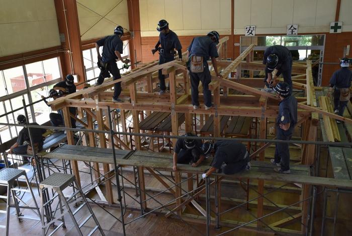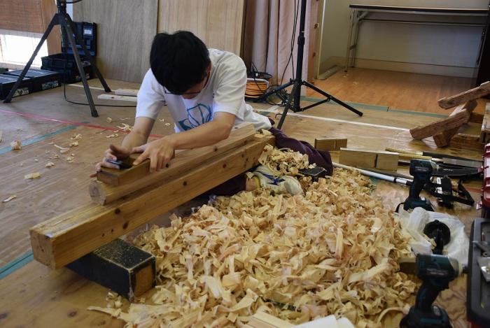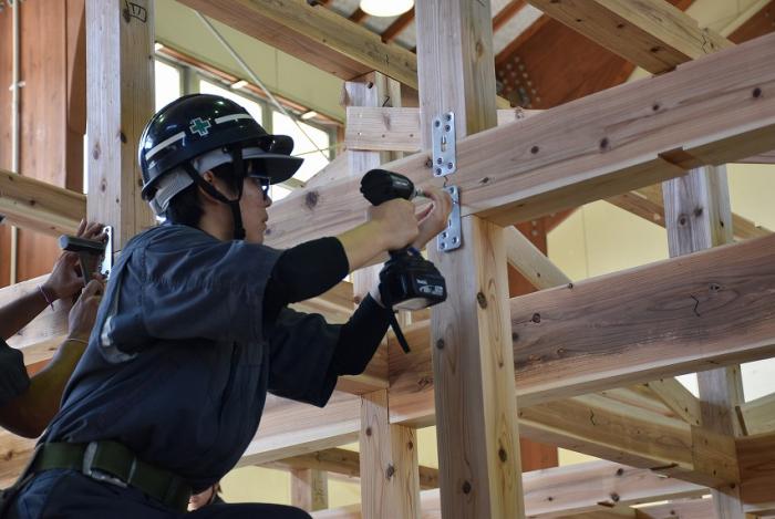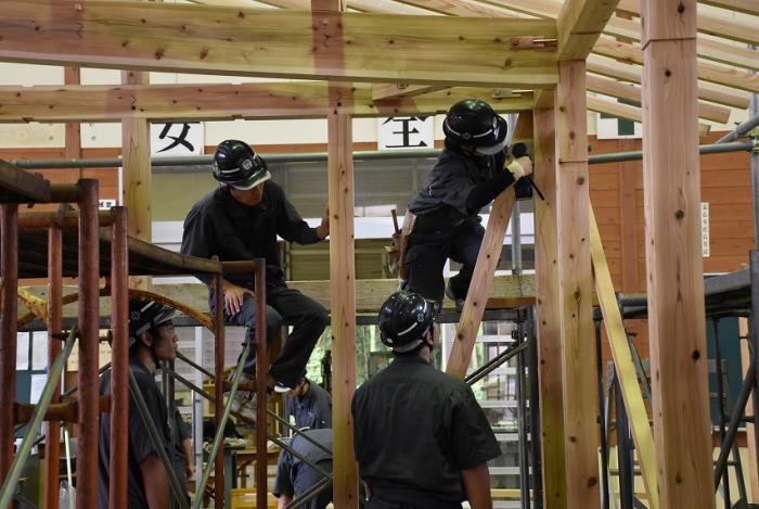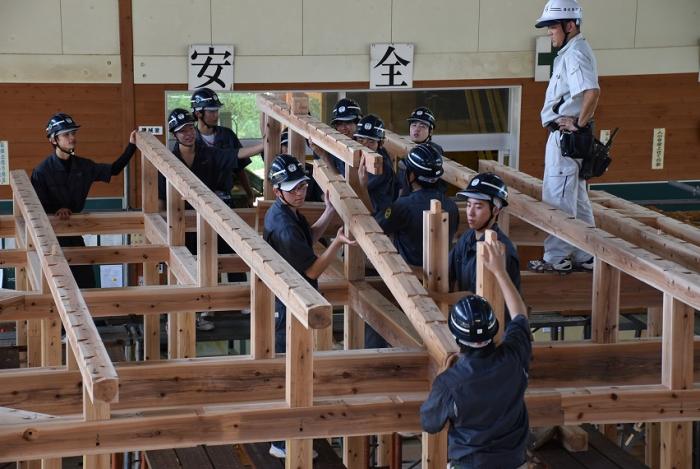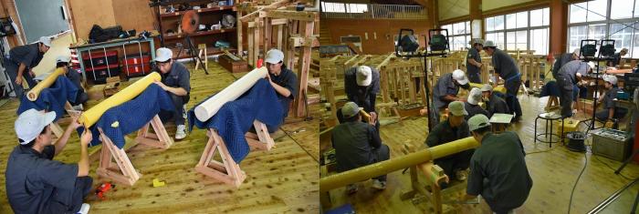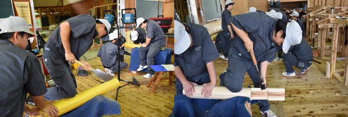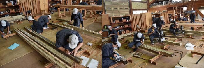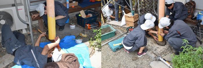 その他の様子は,『鹿児島県立高等技術専門校フェイスブック/木造建築施工現場実習(根継ぎ編)2019アルバム(外部サイトへリンク)』をご覧ください!