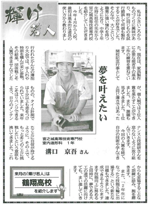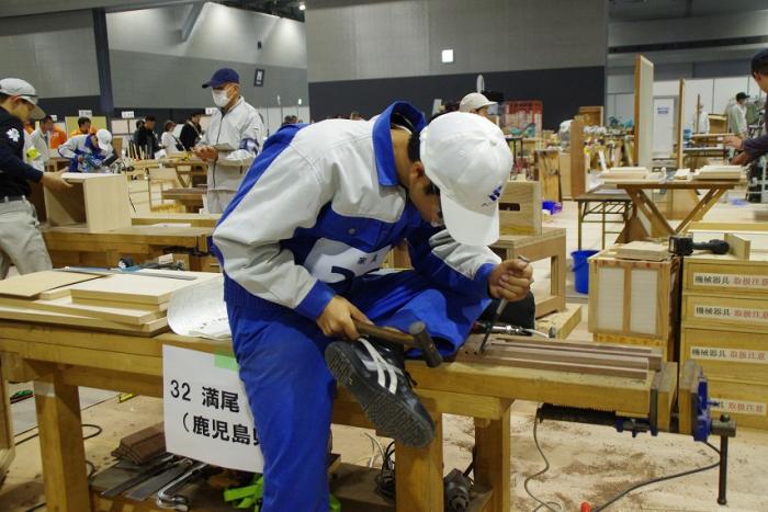 次世代のものづくりを担う青年技能者が「技」の日本一を競い合う「第57回技能五輪全国大会」が愛知県で開催され、全42職種の競技に1,200名を超える選手が参加し、熱戦が繰り広げられました。鹿児島県代表として本校から建築大工職種と家具職種にそれぞれ訓練生2名が出場しました。訓練生は競技課題が公表されて以降、県代表としての自覚を持って、互いに自己研鑚に努めてきました。残念ながら、入賞は逃しましたが、県代表として大いに健闘してくれました。今回の経験を糧に、さらに飛躍してくれると思います。応援していただいた皆様、ありがとうございました!