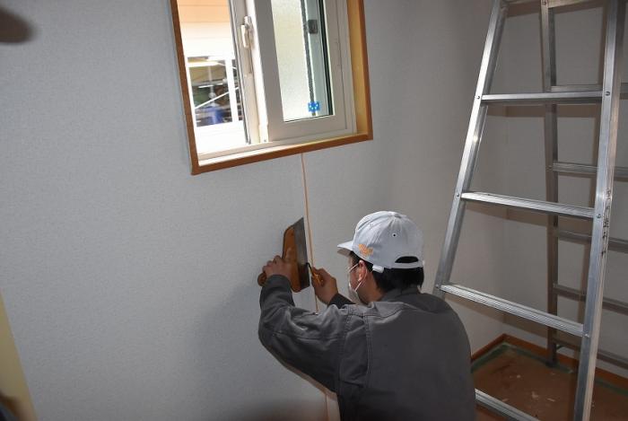 ホーム > 産業・労働 > 雇用・労働 > 職業能力開発 > 宮之城高等技術専門校 > 各科紹介 > 建築工学科 > 建築工学科の現場実習 > 訓練版最小限住宅(内装クロス編)【R2年度】