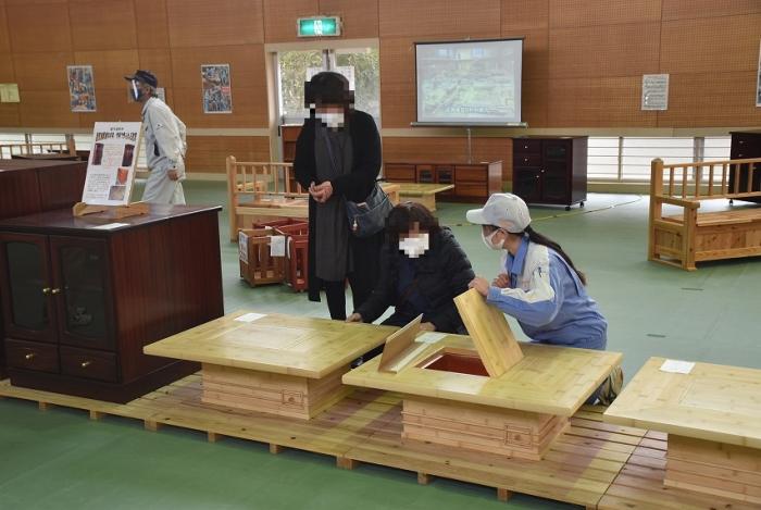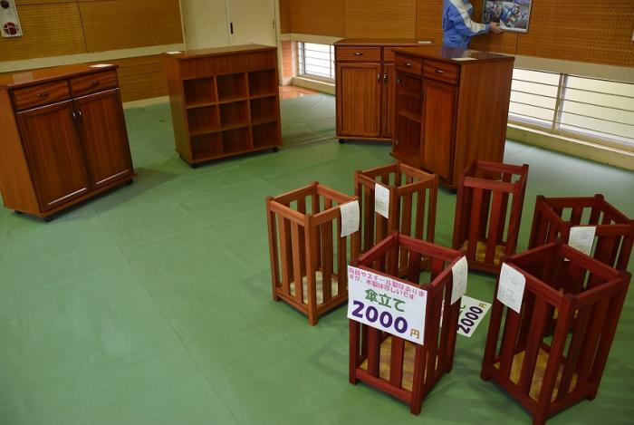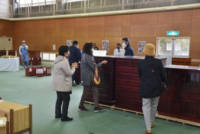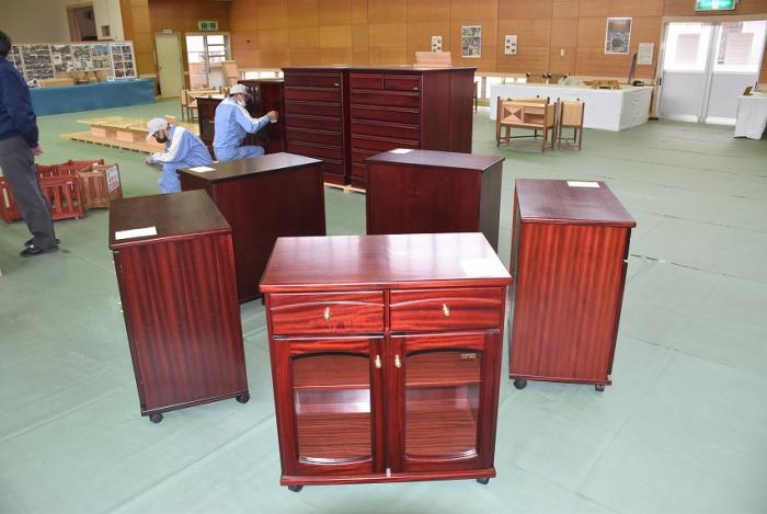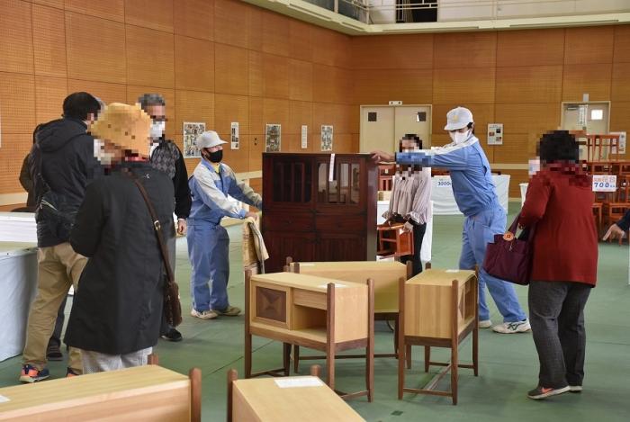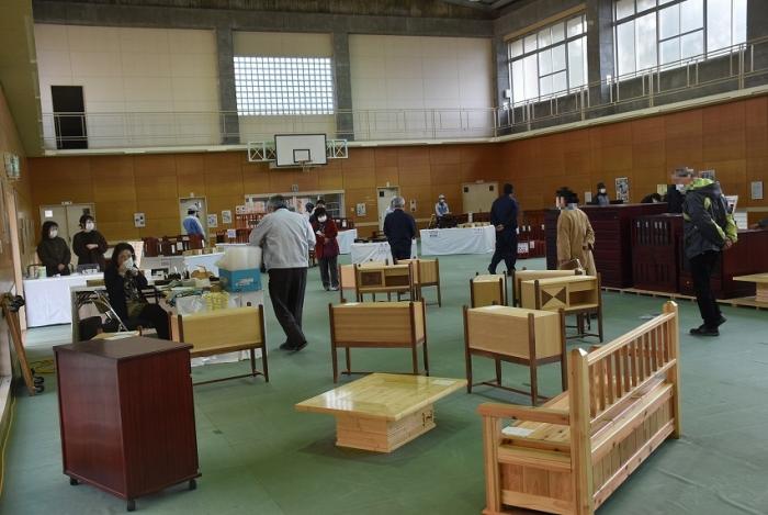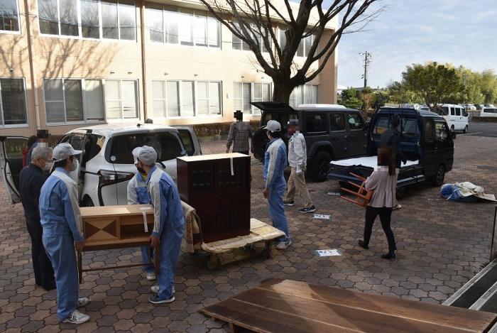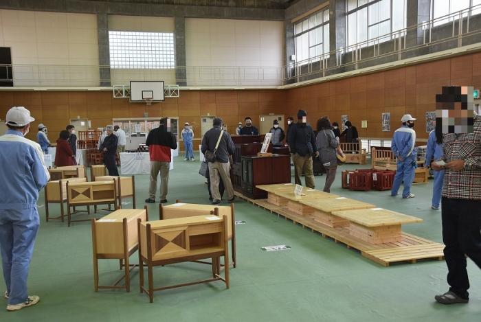 12月10日と11日に、2日間限りの家具展示即売会を開催しました。今年は、スタッフや来場者にマスクの着用、手指の消毒、検温、ソーシャルディスタンスの確保など、感染防止対策のご協力をいただきながらの販売となりました。初日は、お目当ての家具を購入するため、朝早くから行列ができ、会場に並んだ家具は瞬く間に売れていきました。購入された方も、作品の出来映えに感心した様子で、訓練生も誇らしげに家具を搬出していました。また、当日は南日本新聞社の取材もあり、慌ただしい一日となりました。お買い上げいただいた皆さまありがとうございました。