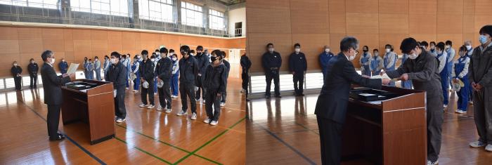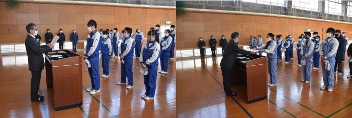 さて、先般開催された校内技能競技大会の表彰式が、第二過程終業式に合わせて執り行われました。県職業能力開発協会から表彰された上位入賞者に、東校長から賞状や盾が手渡されました。審査結果は以下のとおりです。入賞した皆さん、おめでとうございます!
