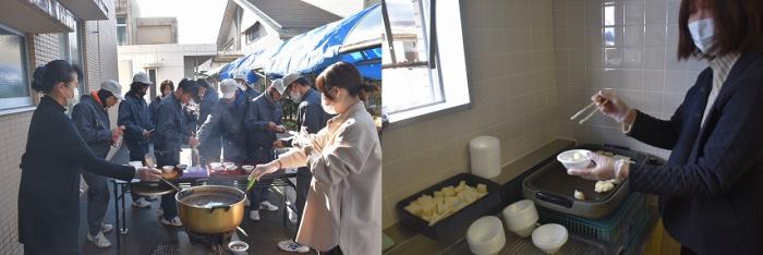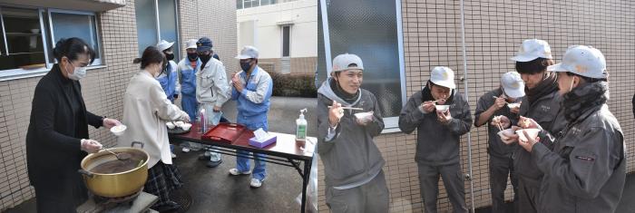 そんな訓練生を労うかのように,鏡開きでは女性職員から恒例のおしるこが振る舞われ,訓練生や職員は美味しそうに餅をほお張っていました!!