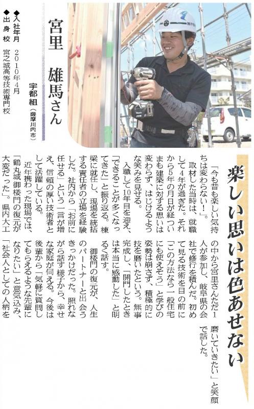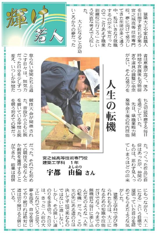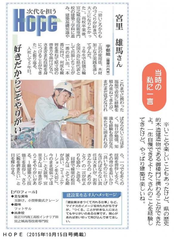 今回、過去に掲載した技術者らを改めて紹介し、その軌跡に触れてもらうコーナー「あの次代を担うHOPE・きらりは今…」で建築工学科の修了生が紹介されました!