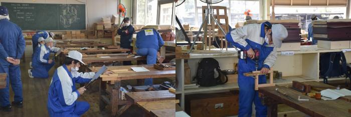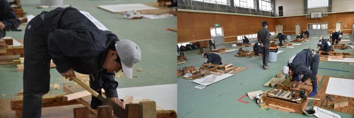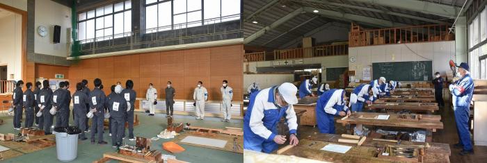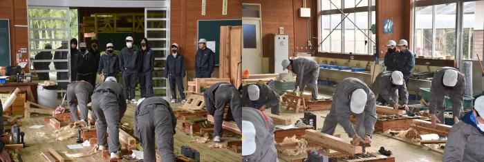 2月10日(水曜日)、本校において技能五輪鹿児島県大会(建築大工)及び後期技能検定(建築大工2級・家具3級)が実施され、熱戦が繰り広げられました。