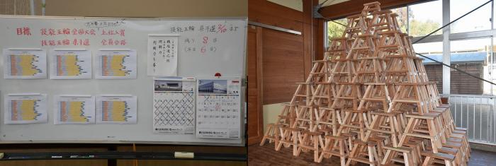 建築工学科1年生は、全国大会での上位入賞及び全員合格を目標に、例年よりもハードな練習量を課して、県大会に挑みました。当日は、特訓の成果もあり、全員が標準時間内に完成させ、例年以上に出来映えの良い作品が並びました。合格発表は3月中旬、全国大会推薦者決定は5月中旬の予定です。訓練生の皆さん、お疲れさまでした!
