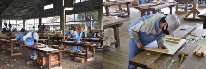 2月下旬、修了を間近に控えた2年生が、修了試験を兼ねた技能照査学科試験及び実技試験に挑み、これまで学んだ知識と技能を発揮しました。実技試験開始の笛が鳴ると1年生は先輩たちの姿を食い入るように見つめていました。合格した者には技能士補が与えられ、2級技能士の学科試験が免除されます。