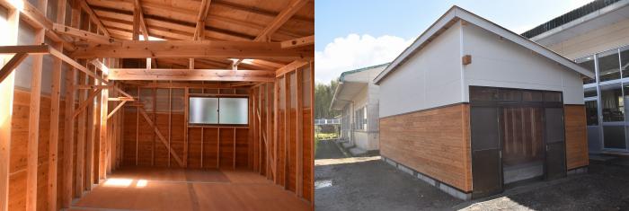建築工学科2年生が取り組んでいた材料倉庫の建て替え工事は、先日無事に完工し、引き渡しとなりました。限られた予算とコロナ禍の制約の中で、年度内完成を目指し取り組んできました。今後は、材料置き場として後輩たちが大切に使ってくれるものと思います。