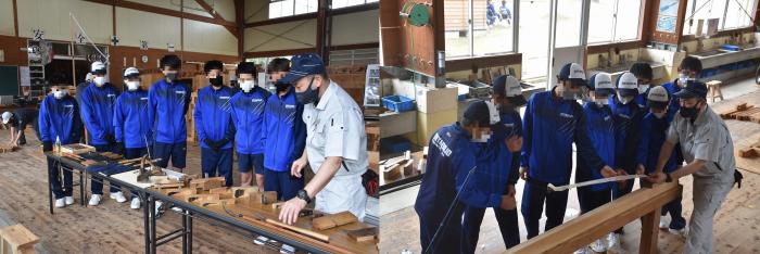 地域における技能振興の一環として、厚生労働省が委託する「若年技能者人材育成支援事業(ものづくりマイスター制度)」を活用して、宮之城中学校3年生の希望者43名を対象に「ものづくり体験教室」を開催しました。この事業は、若者のものづくり、技能離れの実態を踏まえ、技能尊重機運の醸成、産業活動の基礎となる技能者の育成を図ることを目的としており、体験教室は小中学校の児童生徒に対して「ものづくりの魅力」を発信し、将来、技能者を目指すきっかけとなる機会を提供するものです。