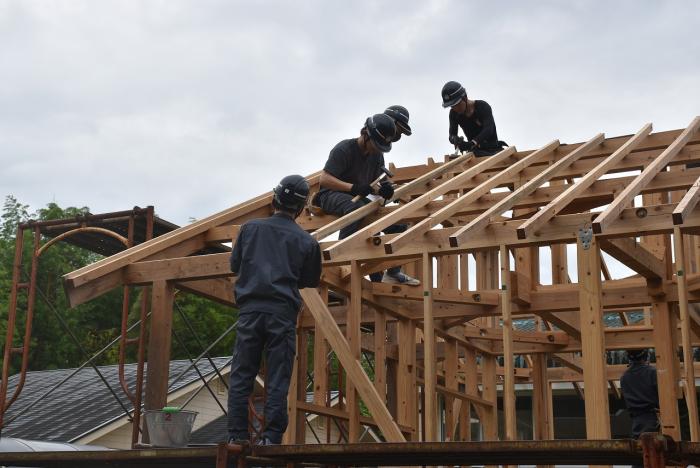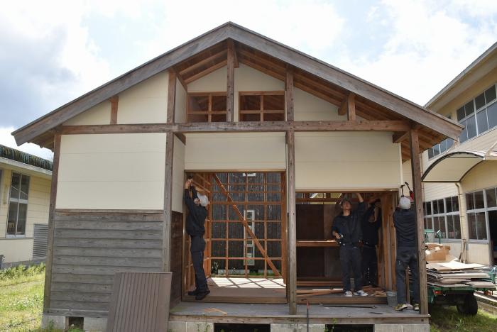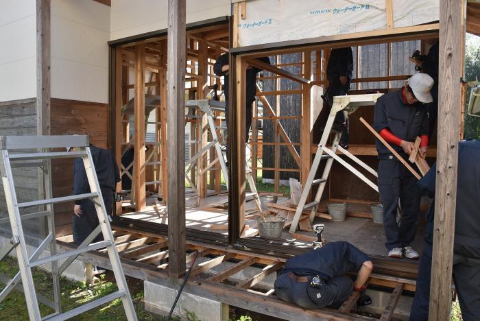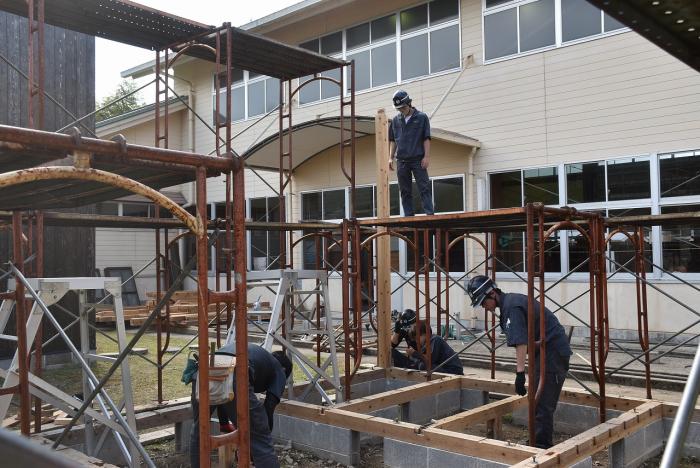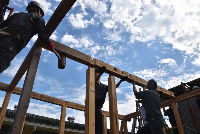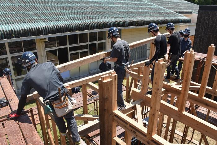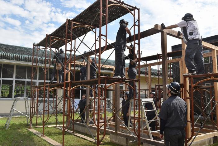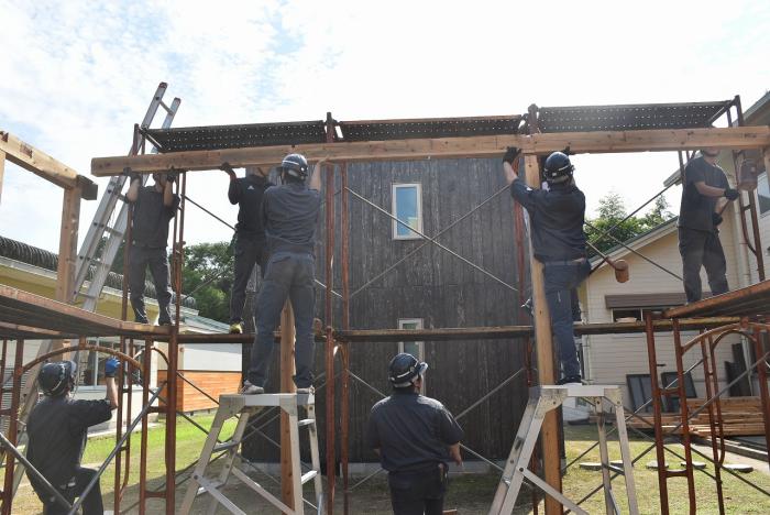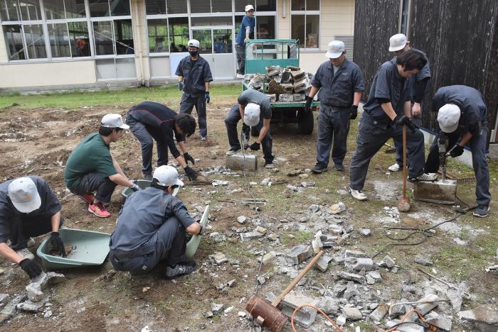 建築工学科2年生は、梅雨の合間を縫って解体工事に奮闘しました。解体工事は重機で建物を一気に壊すイメージがありますが、手作業で慎重に解体する場合や建物の内装だけを解体する場合もあります。建物や周囲の状況によって工法を変えながら作業をしていくため、建築物についての幅広い知識が求められます。また、建設リサイクル法や廃棄物処理法などの法的な知識も必要とされます。なお、今回の解体工事で出た建築廃材は有効活用されます。訓練生の皆さん、蒸し暑い中での重労働、お疲れさまでした。