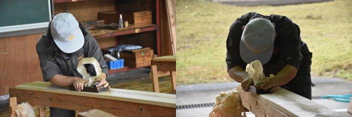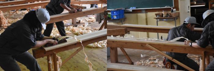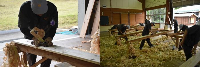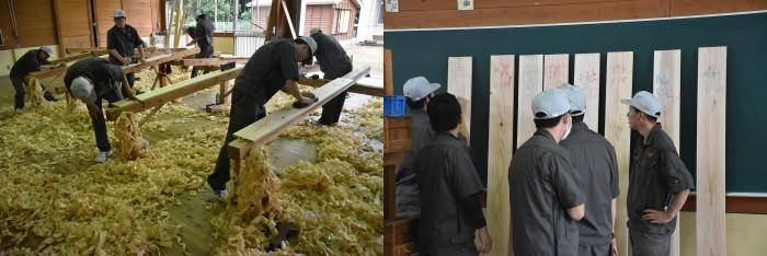 当日は、訓練の成果を発揮するため、体力の限界に挑むかのように2時間以上削り続ける耐久レースの様相を呈していました。試験後は、削り肌を見比べるなど、品評会が行われていました。訓練生の皆さんお疲れさまでした!