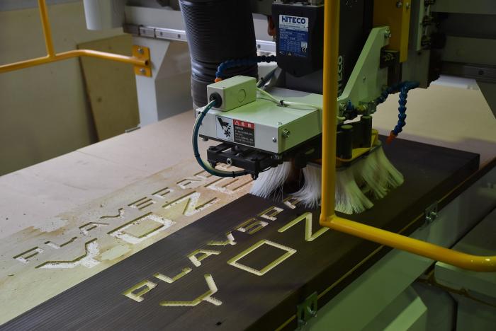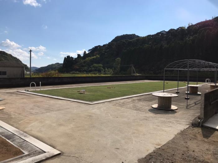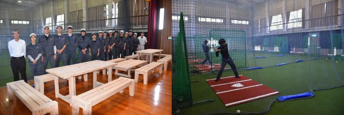 さて,建設業の担い手育成やSDGs推進を取り入れて進めてきた改修工事も無事に完工し,10月31日に「PLAYSPACEYOZEI」としてオープンしました。地域をスポーツで活気づけるため,閉校した小学校跡地が甲子園を目指す球児たちのホームグラウンドとして生まれ変わりました。この度,施設のオープンを記念して,廃材で製作した看板を寄贈。今回の製作には,室内造形科の技術協力をいただきました。